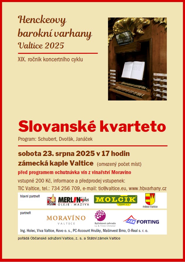Koncert se koná v sobotu 23. srpna 2025 od 17:00 v kapli zámku Valtice.