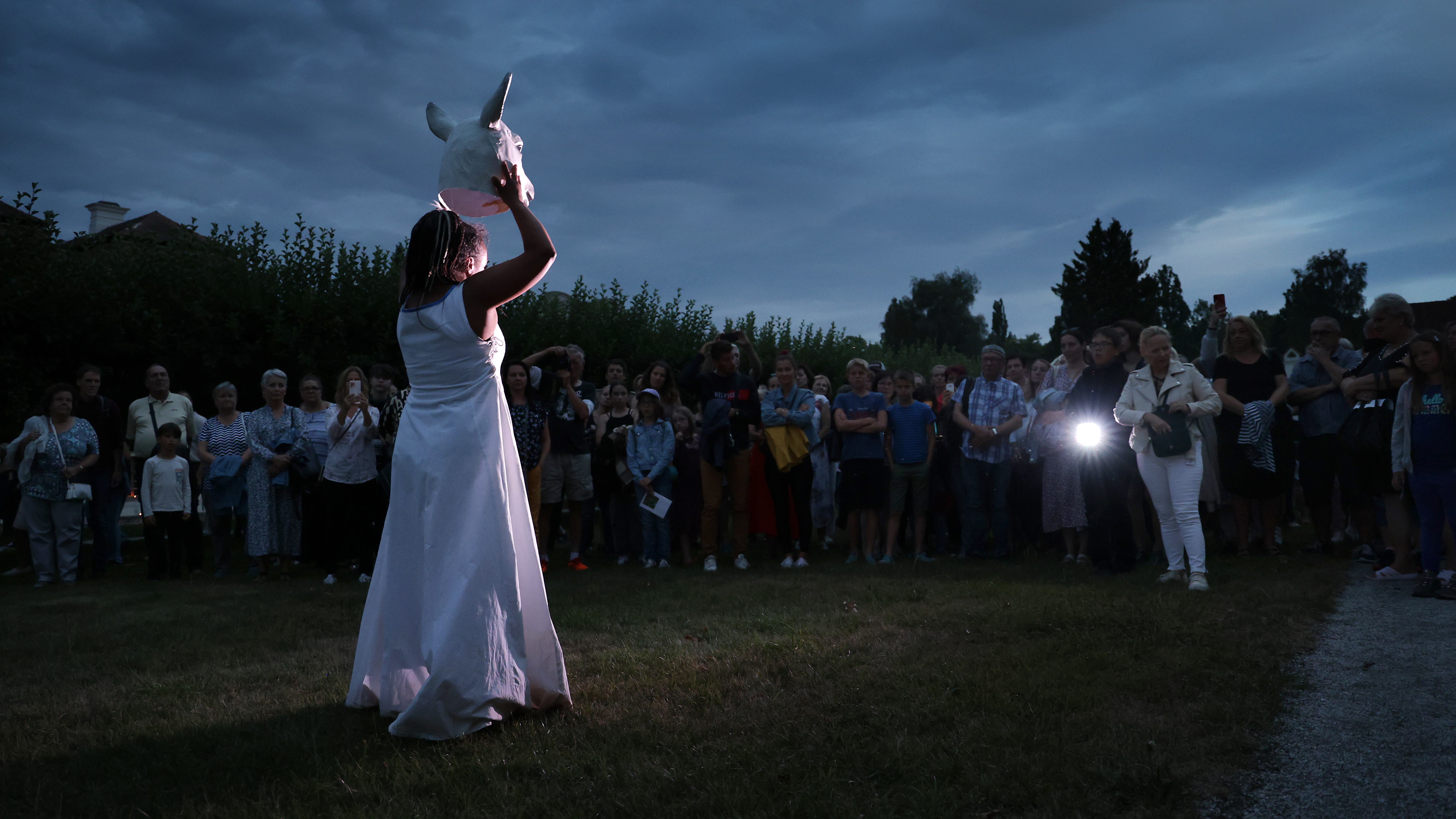 Zhruba stominutové představení se odehrává v celém zámeckém areálu (v zahradě i v interiéru), diváci se pohybují společně s herci a muzikanty. Nejedná se o bezbariérové představení (v interiéru je úzké točité schodiště), nebudou k dispozici lavičky na sezení.