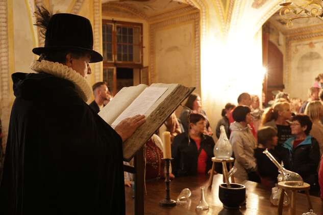 Během čtyř večerů se tak v zahradě a interiérech zámku rozezní hudba a poezie z přelomu 16. a 17. století a s pomocí herců, zpěváků a tanečníků odvypráví mj. legendu o původu pětilisté růže Rožmberků, tajuplnou baladu o proměně mladé dívky v bílou laň či příběhy o touze alchymistů rozluštit mystérium přírody. Průvodcem večera bude postava Zrcadla, která přiblíží dobové způsoby vnímání světa, odkryje kosmogonické souvislosti renesanční symboliky a zavede diváky za skrytými tajemstvími zámecké zahrady. Vystoupí i alegorická zosobnění planet, živlů a mytologických bytostí a společně vytvoří apoteózu svátečního prostoru i času zakončenou velkolepým historickým ohňostrojem.